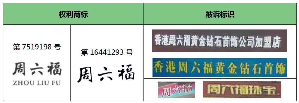 ”等被诉侵权标识构成商标侵权行为,但是未突出使用“周六福”的“香港周六福黄金钻石首饰公司加盟店”构成不正当竞争行为。原审两被告上诉,二审撤销一审判决中关于不正当竞争行为的认定,理由是两被告无主观恶意,且无证据证明“足以导致相关公众的混淆误认”、不构成不正当竞争行为。经周六福珠宝公司申请再审,福建省高级人民法院在(2021)闽民再250号、(2021)闽民再253号民事判决中认定:(1)“ ”“