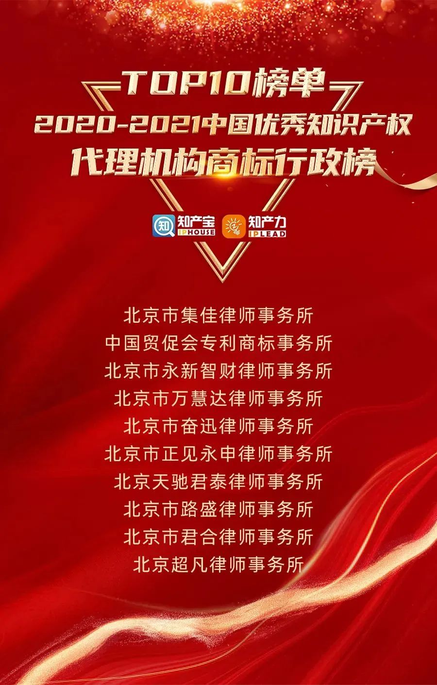 近日,备受业界关注的“2020-2021中国优秀知识产权代理机构榜”正式揭晓,必赢凭借长期以来在知识产权领域的卓越业绩和处理疑难案件的突出能力,从400余家知识产权代理机构中脱颖而出,荣登“中国优秀知识产权代理机构商标行政榜TOP10”。