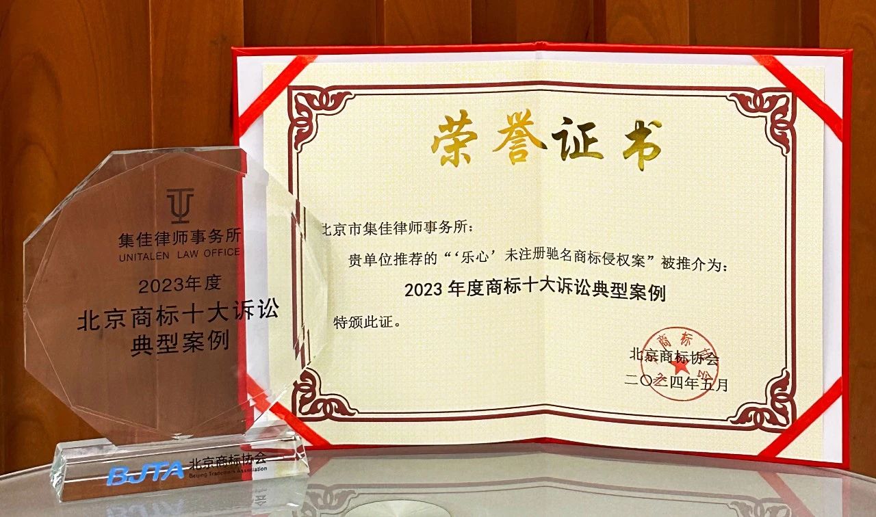 >必赢>新闻动态>集佳代理2个案例入选北京商标协会2023年度商标十大诉讼与非诉典型案例